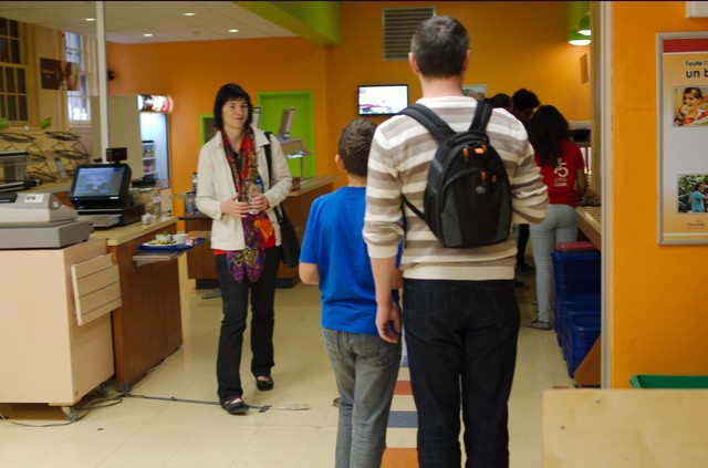Первые дни Артур оставался в продленке с опцией домашнего задания, т.е. он делал его в школе. В случае, если ребенок на больничном, или просто забыл записать д\з, то всегда можно посмотреть уроки на внутреннем школьном портале. Сейчас Артур втянулся и я забираю его сразу после уроков. Родители спускаются в зал ожидания ровно в 15-00 и в порядке очереди диктуют дежурному имена детей, за кем пришли. Но так как обычно приходят одни и те же в одно и тоже время, то нас уже наизусть всех знают. Некоторым детям, которые живут рядом, родители разрешили самим выходить из стен школы. Для этого оформляется пропуск в администрации, и при выходе каждый ребенок его предъявляет дежурному. Такие правила действуют, по-моему, до достижения 12 летнего возраста, как будет в секондере, я пока не знаю. Что приятно, никто из детей не «высылает» женщин по определенному направлению, а молча и без особого напряга дети протягивают пропуска.
