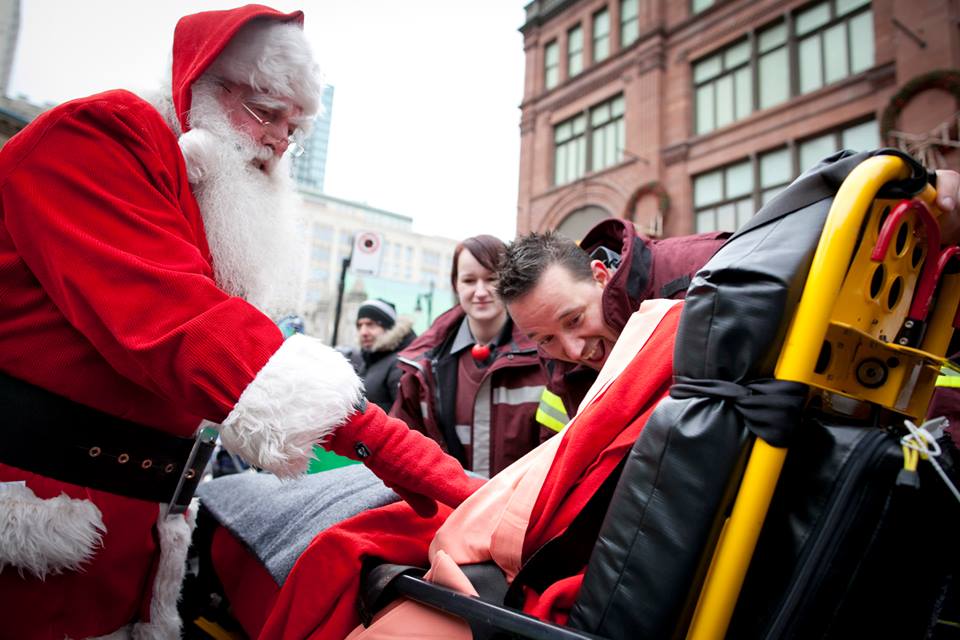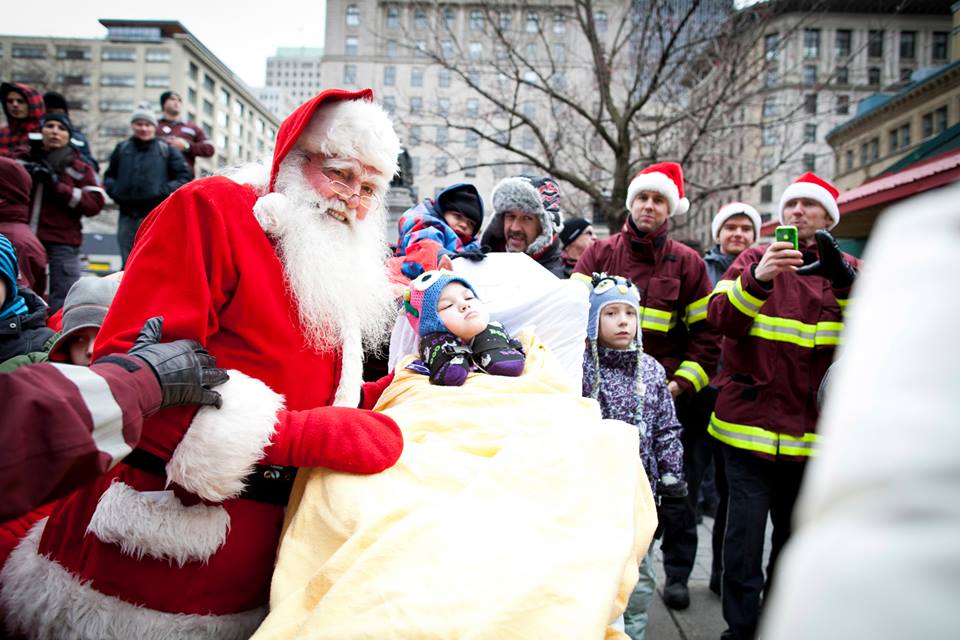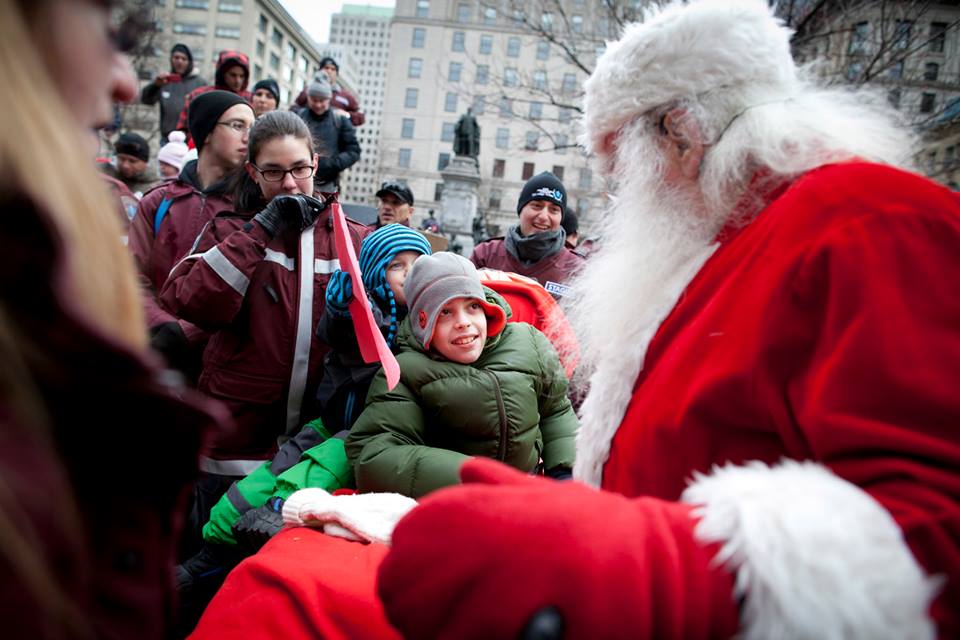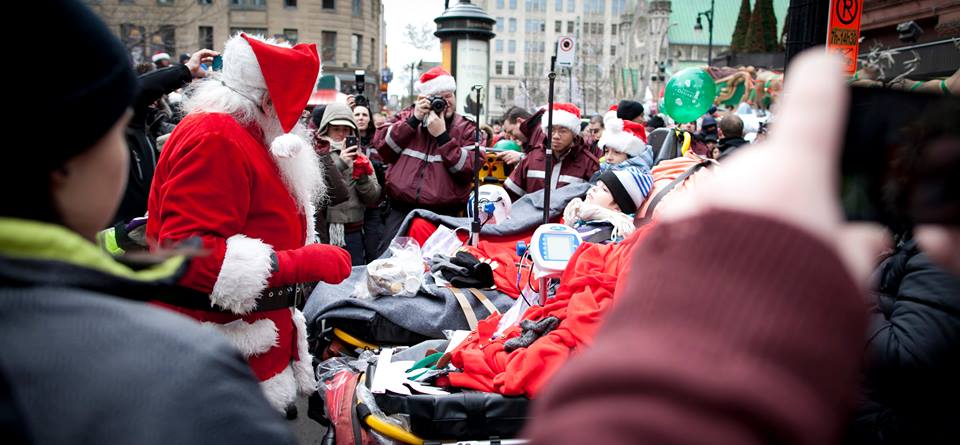 Но последующие фотографии я не могу не напечатать. Понимаете, после такого отношения к больным детям, я могу простить Монреалю и разбитые дороги, и много еще чего. Вряд ли стоит искать лицемерие или еще какой подвох в том, что туда привезли этих малышей с капельницами, хотя я не знаю, по каким критериям деток выбирали. Просто на мгновение представьте, что для них значит эта встреча с Санта Клаусом!!! Он слез со своей повозки, чтобы пообщаться с этими детьми.