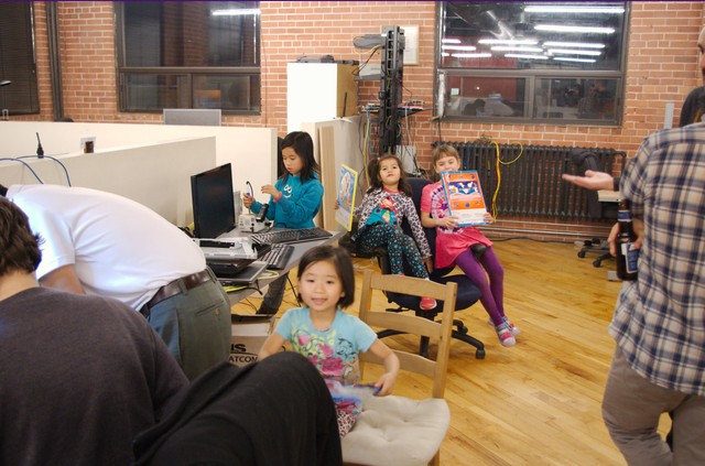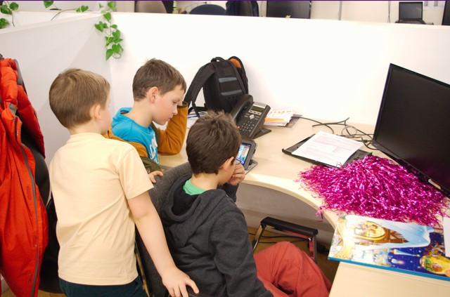 и разбором подарков (всем детям подарили по набору конфет, по которым идет отсчет дней до Рождества)IMGP3228Тут бы уходить, но дети разошлись :-). Они чуть не разнесли офис по кирпичику 🙂