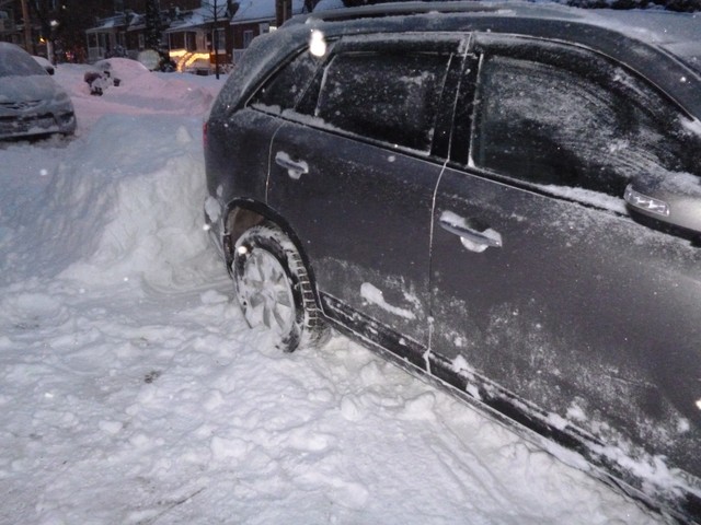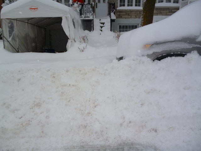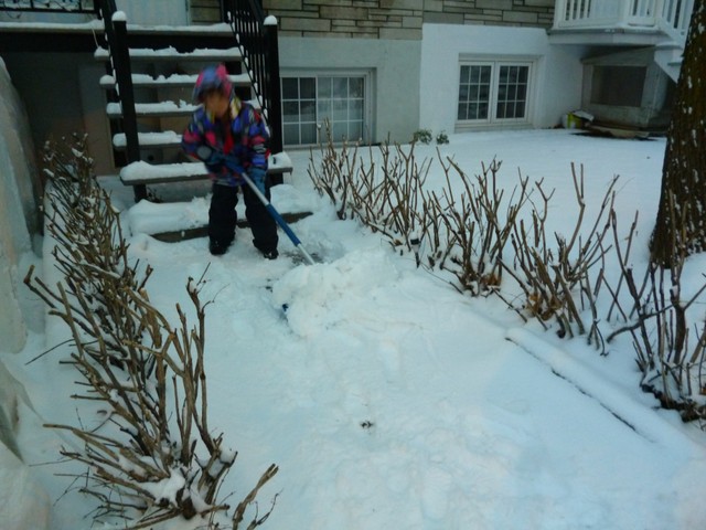 Утро принесло одновременно и приятный, и не очень сюрприз. Приятный, потому что когда так много снега, и он такой белоснежный, пушистый, когда пробираешься по колено в сугробе к соседям забрать после ночевки детей- это здорово, это так весело!!! А вот как посмотришь на крыльцо и посчитаешь, сколько кубометров снега надо перекидать лопатой- то уже немного грустнее. Я ж известый «лопатометатель». Но не помочь Марату не могу, потому как у него болят плечи, а муж мне еще нужен молодой и здоровый. Поэтому, где инициативно и полезно, а где путаясь у него под ногами, я старалась внести свою лепту в спасении авто из снежного капкана. Один из наших соседей сегодня раза три выходил чистить свой бьюик. Но почти вся наша улица (соседи) вышла с лопатами и снегоуборочными машинками (вот кому завидовала) почти одновременно с нами- после 15.00. К этому времени и снег уже падал не так интенсивно,а прогноз обещал совершенно бесснежную ночь, так что можно было браться за дело, ну а мы как раз немного «пришли в себя» от позднего возвращения домой с банкета.