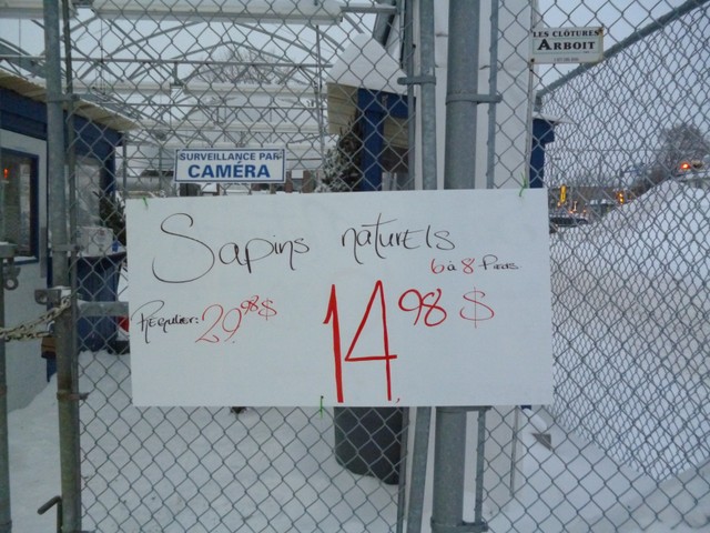 Они в принципе, продавались по всему городу. И на парковках во многих местах были елочные базары, и возле Хоум Депо, и Канадиен Таер, и ИКЕА. «Наш» проверенный недорогой вариант