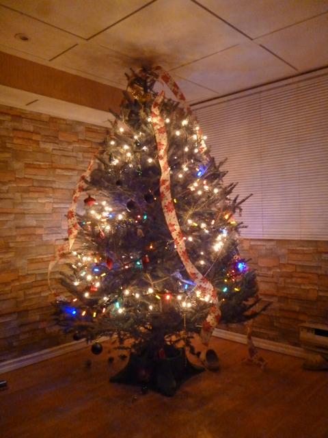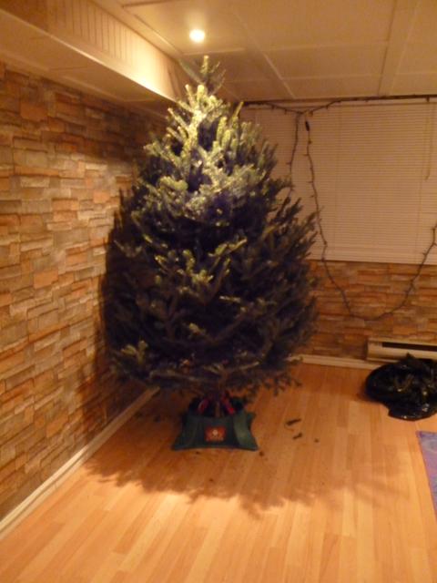 Выбирали поменьше, но в бейзменте высота потолков небольшая, и Марат был вынужден отпилить приличную часть макушки. А звездочка все равно не помещается.(((