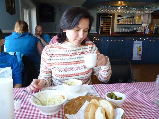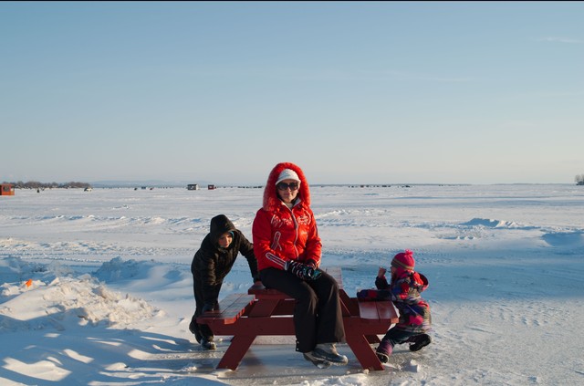 Оказалось, даже пеший вход в парк- платный. 7 долларов с носа, плюс аренда тюбов- 6 долларов. Поскольку ни подъемников, ни каких-либо других интересностей больше не было (ну не на пустой же детской площадке по морозу гулять) В нашем лавальском парке все 33 удовольствия за бесплатно. 🙂 Мы снова загрузились в машину и поехали в сторону…Saint-Jean-sur-Richelieu на ,кабану сюкр. l’Érablière du golf против которой утром наш папа КАТЕГОРИЧЕСКИ возражал.