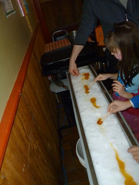 Для нас же преимуществом этого лагеря является и его близость к дому, и материальная база всего спортивного комплекса. То есть первые три дня у детей были различные эстафеты, конкурсы внутри спортивного комплекса, у Артура даже было занятие по фехтованию. Были ежедневные прогулки на свежем воздухе, катание на катке в среду (для тех, кто умеет, у «неумех» были спортивные игры в соседнем зале), обязательно купание в бассейне каждый день. Причем, во вторник Карина вернулась с недосушенными волосами, и с такой вот влажной головой гуляла на улице в лагере. Надо ли говорить, что полночи я в тревоге бегала ее проверять- не поднялась ли температура, не заложен ли нос. (фух, пронесло! :-). В четверг детей всем лагерем вывозили кататься на тюбах Mont Avila: море восторга, здоровый румянец. В пятницу, в последний день лагеря, их возили на целый день на La Cabane à Sucre des Sportifs. Я подробно описывала наш прошлогодний визит тут. Ну а в этот раз у них опять было катание на горках, тематические мероприятия внутри столовой, конечно же, обед в классическом квебекском стиле и дискотека. Уходя из лагеря, все говорили друг другу «До встречи!»