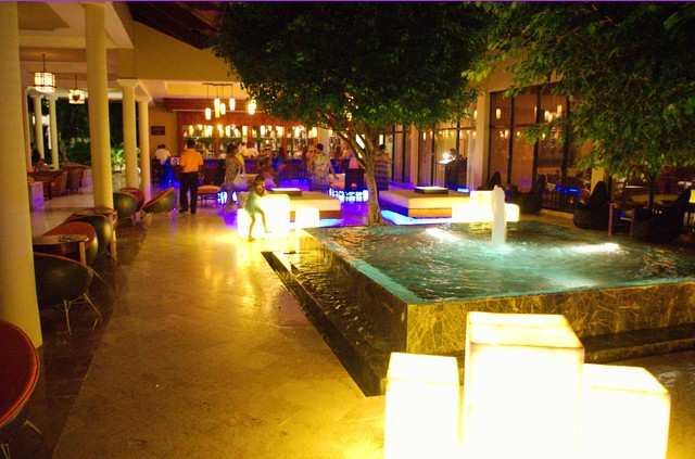 Вечером террасы административной части и ресторанов наполняет дымка ароматизированных свечей, которые специально расставляются и периодически обновляются, все в подсветках, отдыхающие пестрят яркими нарядами и украшениями, звучит музыка и начинается ночная жизнь. В ней мы практически не участвовали, только смотрели детскую анимацию, взрослая начиналась очень поздно. Ну и казино-дискотеки были не про нас, так как детей одних мы оставить не рискнули бы. Но свой шарм, и даже гламур, в вечерней Мелии определенно есть.