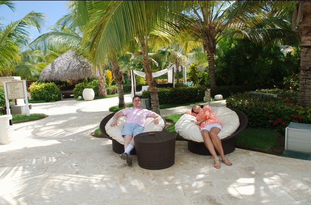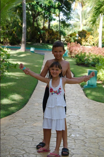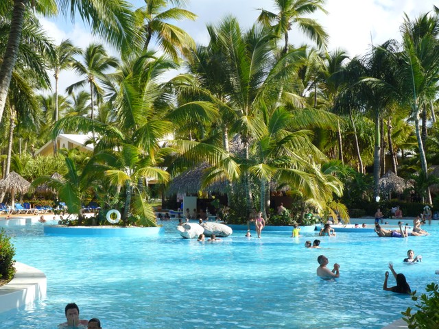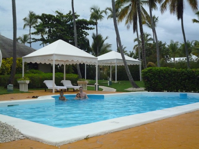 И уж не знаю почему, но купались в этом полупустом бассейне, в основном канадцы. Мы даже познакомились там с семьей-квебекуа, которые хотели нашим детям подарить надувные мячи, так они, оказались, живут возле метро Розмон. Тоже приехали отдохнуть всей семьей: родители и два молодых сына с женами, одна из которых в положении. Мы три дня рядом отдыхали. Но мячи нам так и не перешли «по наследству», потому что мы улетали с ними в один день: они в 10 утра Эйр Канада, а мы в 14-00 Вест Джетом. А вообще, там была такая прикольная «традиция» передавать от семьи к семье надувные игрушки и мячи для отдыха, т.к. с собой увозить их нет смысла, а в Доминикане это нужнее.