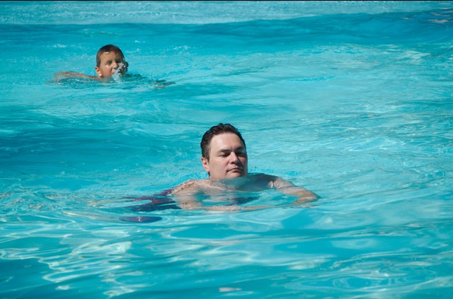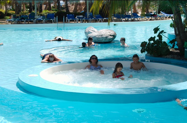Причудливые формы бассейна и растущие рядом пальмы позволяли в любое время суток найти место в тенечке в воде, поэтому мы не боялись обгореть. Ну а для полного комфорта мы занимали уютный дек под пальмовым навесом и отдыхали там. Купались, дремали, читали книги. Дети могли купаться самостоятельно- всегда были у нас на глазах.