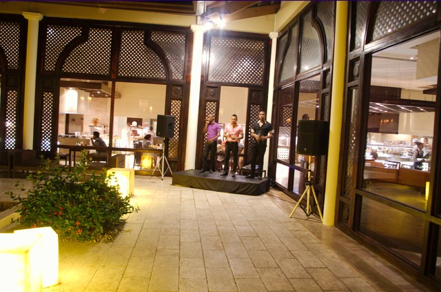 Общий ресторан расположен в нескольких вариантах- как на открытой террассе, так и в закрытом кондиционированном помещении. И пусть перепад температур всего на несколько градусов, но все равно в тысячу раз приятнее есть в прохладе, чем на жаре. Принцип питания один и тот же- шведский стол. На входе вас встречают сотрудники и проводят к свободному столику. Иногда мы просили конкретное место, но посетителей предпочитают все-таки «рассадить.»