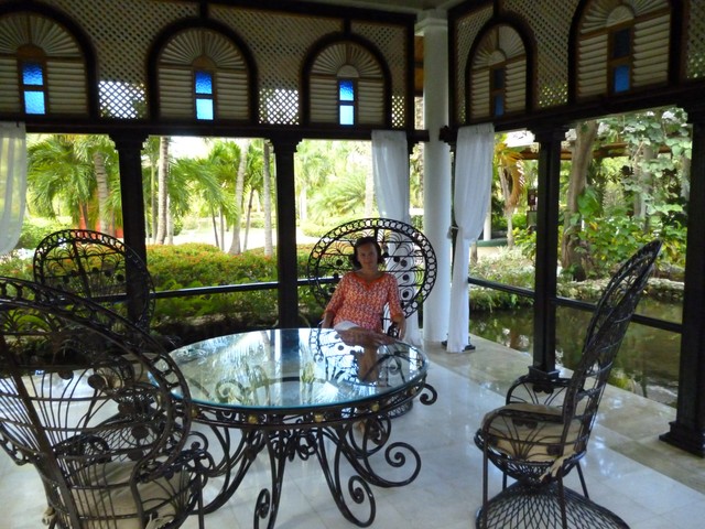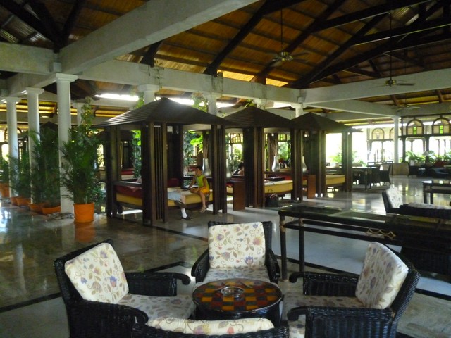 После 20 минутной поездки, машина свернула к лобби Melia Caribe Tropical. Мы тихонько вжались в кресла авто. После воздушного, яркого Иберостар, перед нашими взглядами нам открылся настоящий колониальный карибский стиль. И невероятное количество людей. С одного крыла толпа выселялась, с другого крыла людей было не меньше- народ вселялся. Это был полдень субботы. Очереди были везде. Что мне окончательно испортило настроение- это обилие коричневого цвета. Я знаю, что оформление дверных проемов, наличников, проемов между комнатами, потолков темнокоричневыми деревянными реями, балками, это очень популярно и на карибах, и даже в нашем Монреальском Отремоне или иных давнопостроенных районах, даже в нашем Ахунстике (как гляну варианты на киджижи, так вздрогну. и никакие восторги про «характер», «стиль», и «дыхание старины» никогда не изменят моего отношения. Ну не мое это просто, не мое!)
