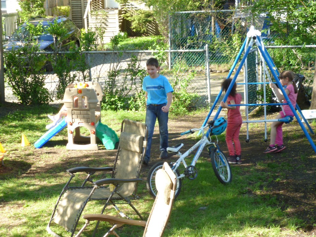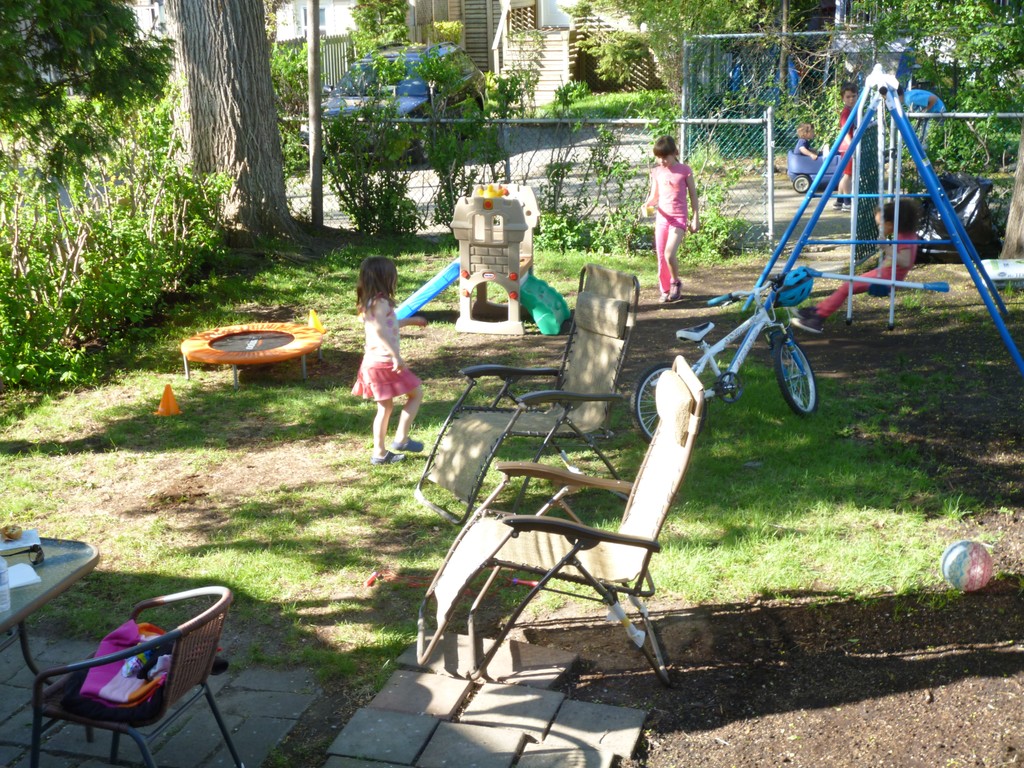 А сейчас все хорошо. Кое-когда дождики (вот сегодня была первая гроза, во всяком случае над нашим домом),  но и дней солнечных много, и на велосипедах во всю катаемся, детвора по выходным с утра до вечера на улице играет, количество детей на нашем заднем дворе постоянно непостоянное. 🙂P1060034P1060028Разве что пока бассейн не доставали, вот для него все-таки еще холодно.