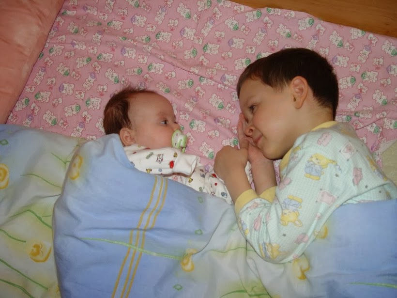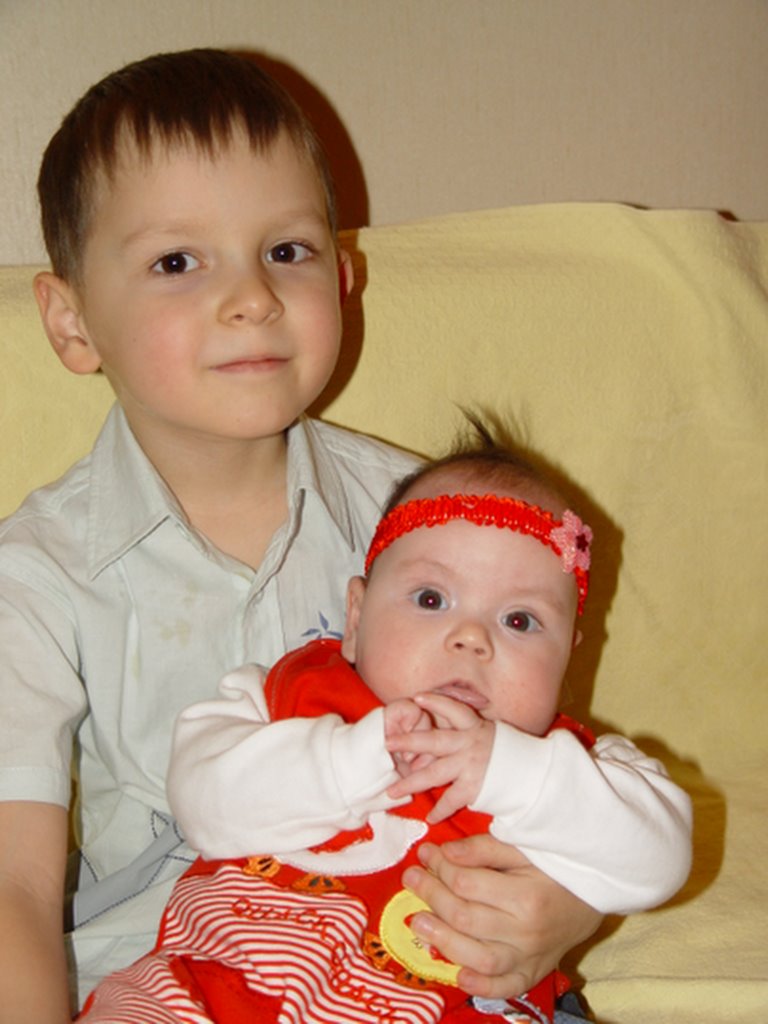 А потом, как это иногда бывает :-), в конце сентября 2007 года Артуру принесли «подарок»- сестренку Карину. Когда мир целых пять лет вертелся только вокруг тебя одного, вдруг начать делить его еще с кем-то, согласитесь- к этому нужно привыкнуть. Но со временем Артур принял этот факт, очень любит сестру, хотя, как и положено, часто ворчит от того, что «эта мелочь без разрешения берет его вещи, мешает играть в компьютер и лезет в с вопросами». 🙂 Но тем не менее, он очень о ней заботится, когда они остаются вдвоем, обещает разобраться с обидчиком «ты, Карин, только скажи, я сразу приду. Ведь я уже в секондэре!» Карина отвечает ему безоговорочным обожанием, Артур пользуется безграничным доверием и авторитетом. Если Артур сказал, что это «синее», то даже если он ошибся и это- зеленое, Карину не переубедить. «Так мне сказал Артур». Все бывает, как у любых брата и сестры- и не поделят что-то, и поссорятся, а бывают дни, что «така любов, така любов!», хоть к болячке прикладывай. 🙂 Обычная история. 🙂