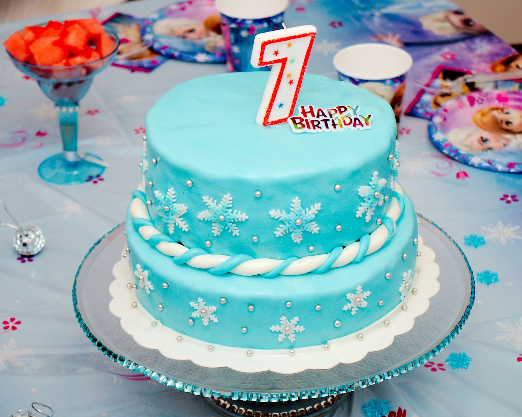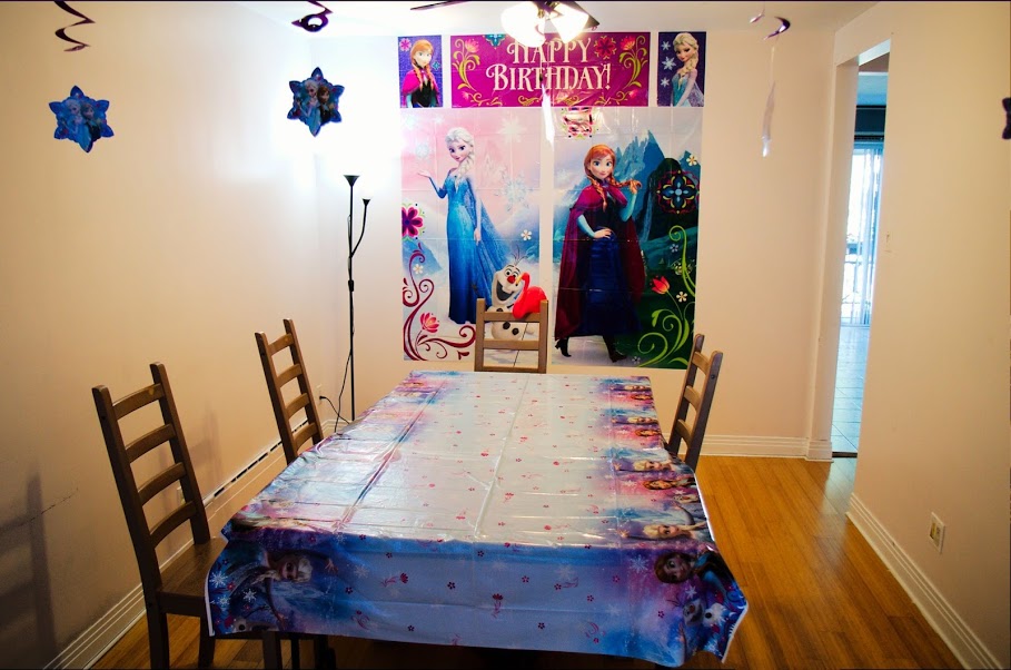 Поскольку в последнее время девчоночьим фаворитом был мультик «Холодное сердце», он же FROZEN,  он же Reine des Neiges , то единогласно было решено сделать оформление Дня рождения в этом стиле.