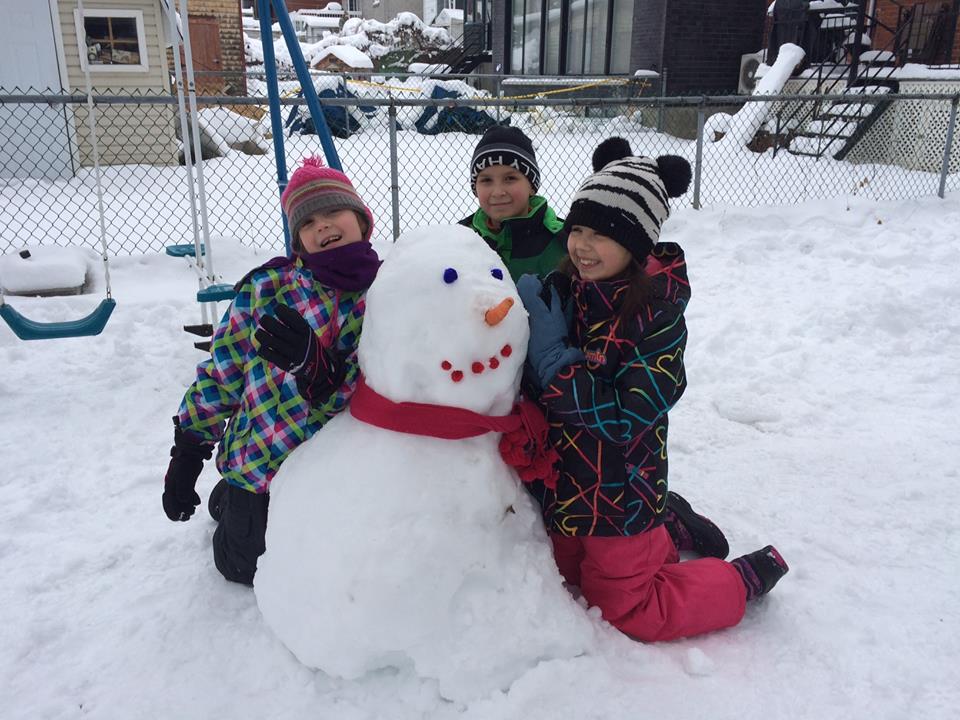 Природа сначала нас поддержала в праздничном настроении, и мы с детьми успели даже снеговиков налепить.
