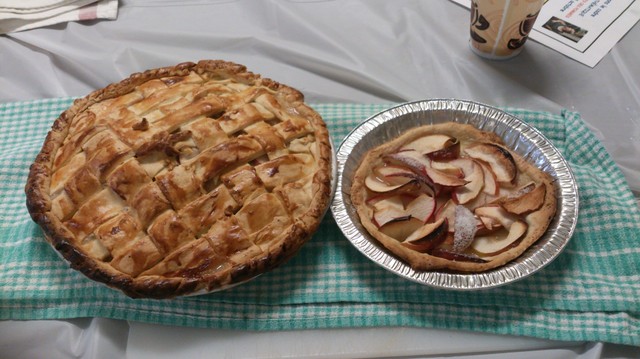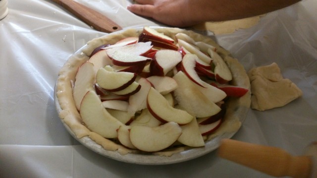 На следующей неделе мы осваивали рецепт традиционного (по заверениям организаторов) квебекского яблочного пирога. Было весело, результат дискуссионный. 🙂