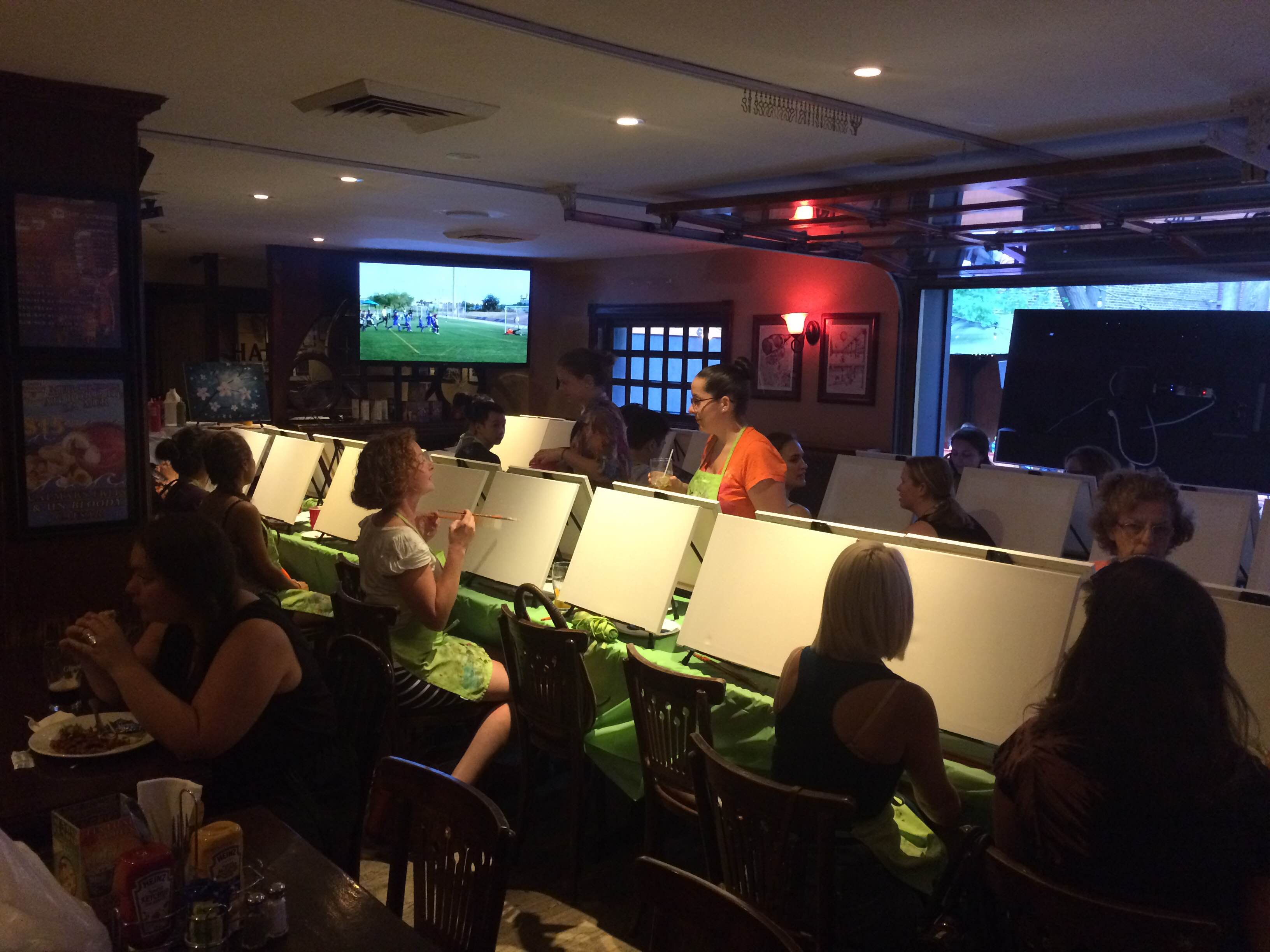 Сегодня  урок рисования проходил в даунтауне в Ирландском пабе. IMG_3384Мы обе заблудились немного в поисках этого кафе, но к началу пришли вовремя и даже заняли очень хорошие места рядом с художником.
