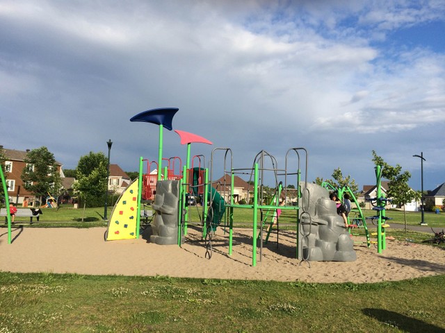 Как я уже упомянула в начале, гулять по району было сплошное удовольствие: чистейший воздух, ухоженные газоны и цветники, красивые дома. Детских игровых комплексов с разными полосами препятствий было два, поэтому свою энергию нашим милым чадам было где спускать, а мы в это время могли спокойно пообщаться.