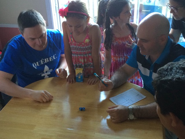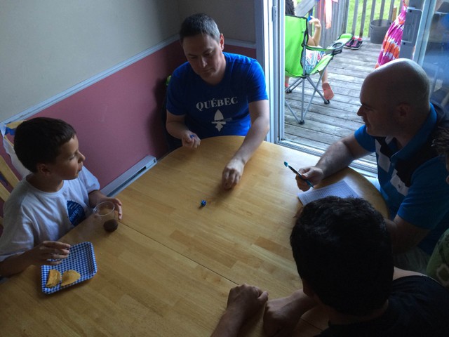 Из-за футбола мы задержались с прогулки и немного переживали за детей, хотя оставили их не одних, а под наблюдением 17 летней девушки, но волновались мы напрасно: наши дети тоже играли все это время в настольные игры, и какая разница, что вместо стола им удобнее было расположиться прямо на земле на патио. 🙂